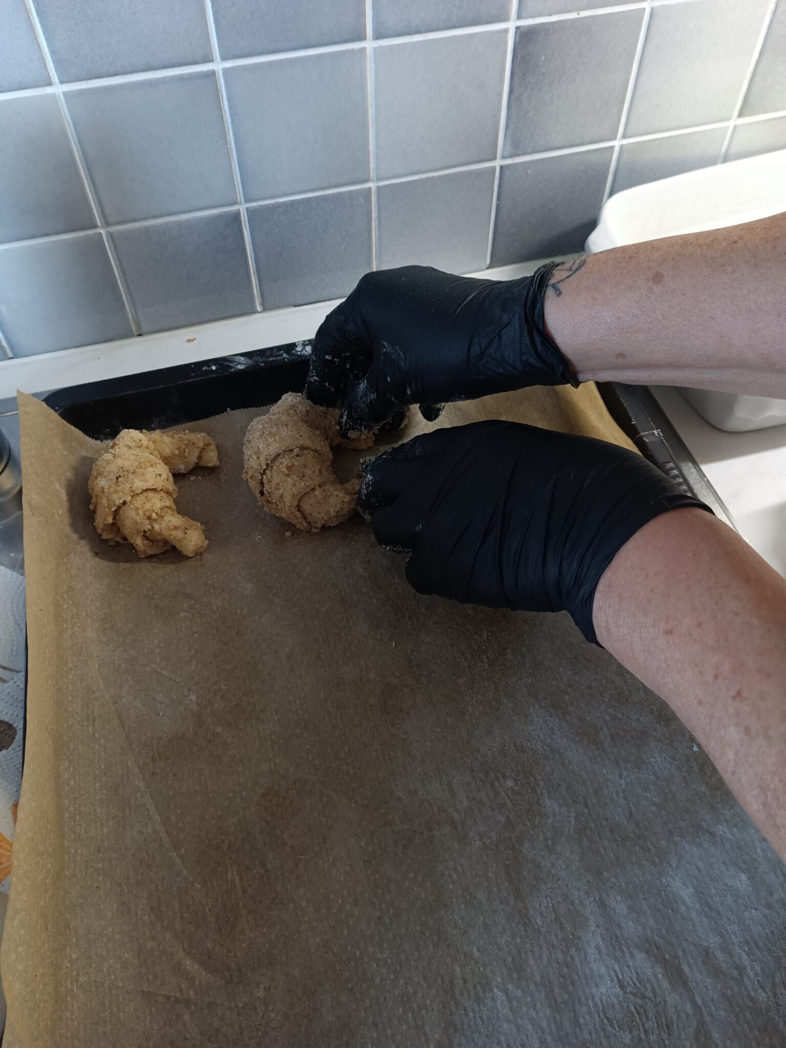 Auf ein Backblech legen und abgedeckt weitere 30 min. rasten lassen.